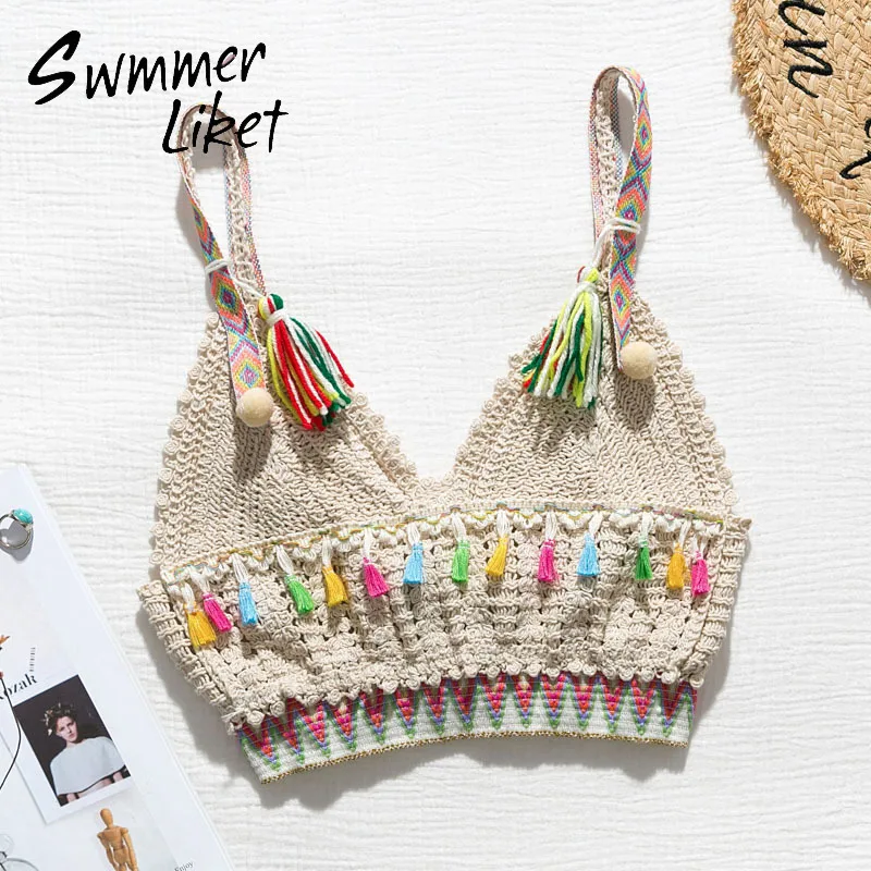 Best Swimsuit from Swmmer Liket Official Store for Cover Ups Swimsuit Kimono Bikini Weave Crop-Top Tassel Crochet Beach-Wear Summer Sexy